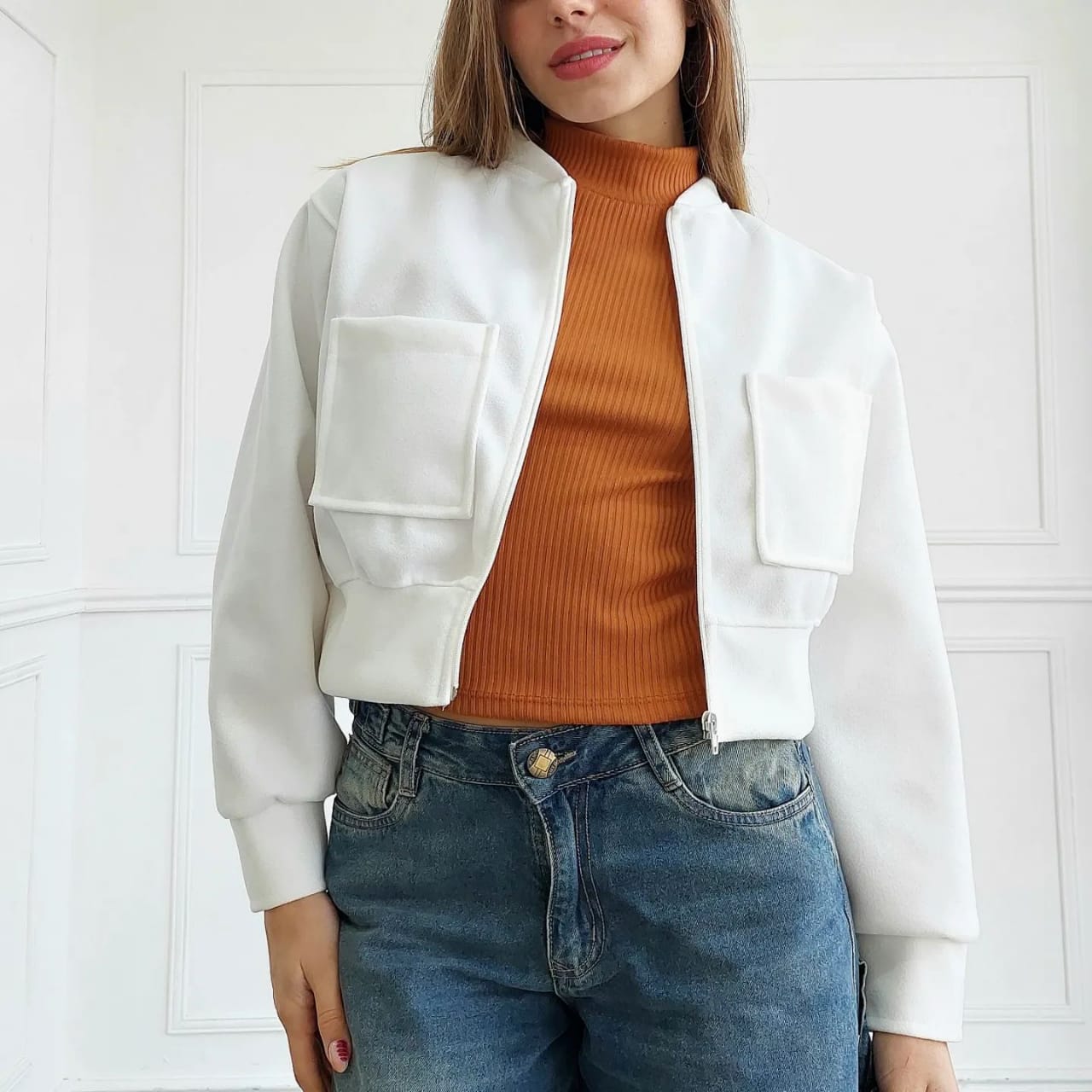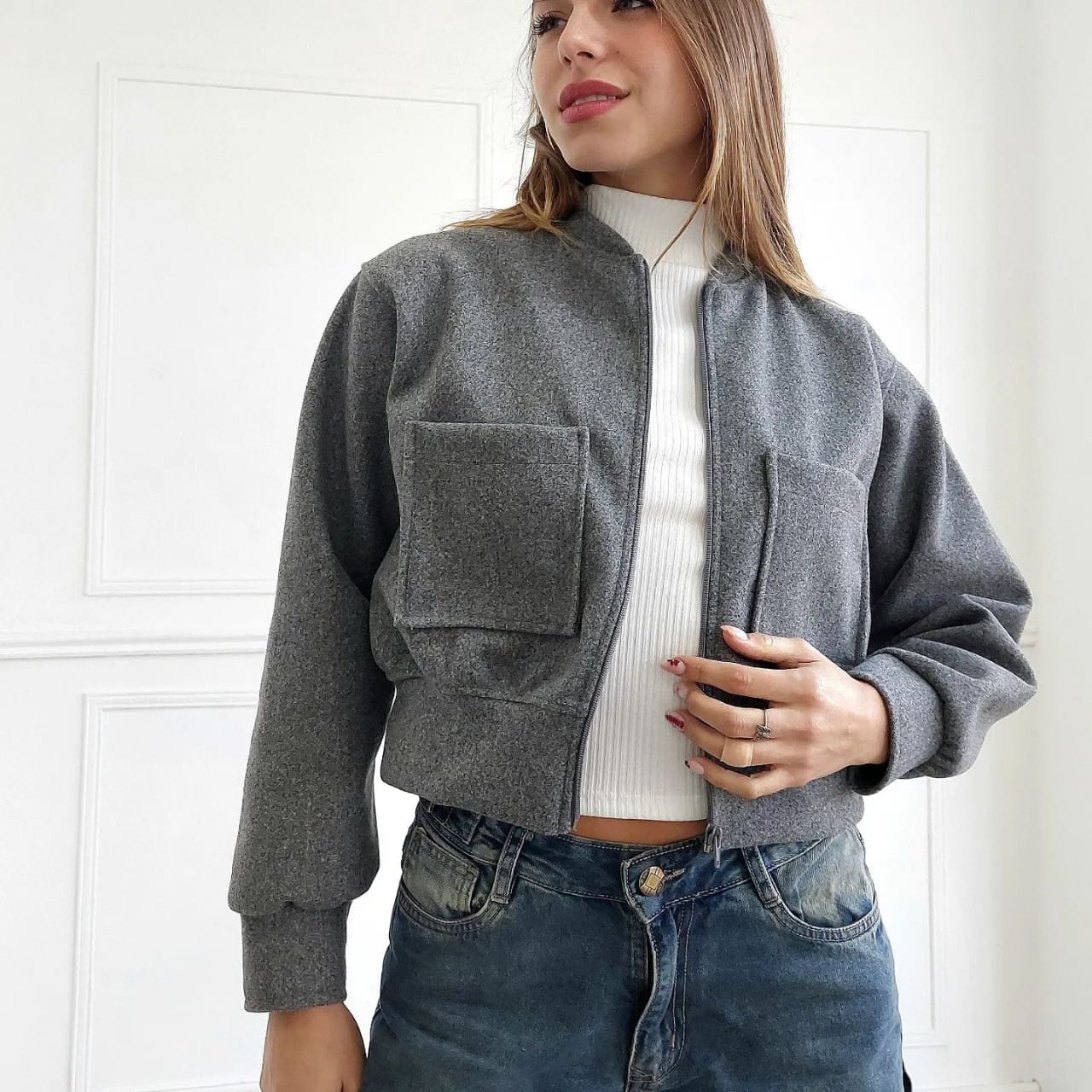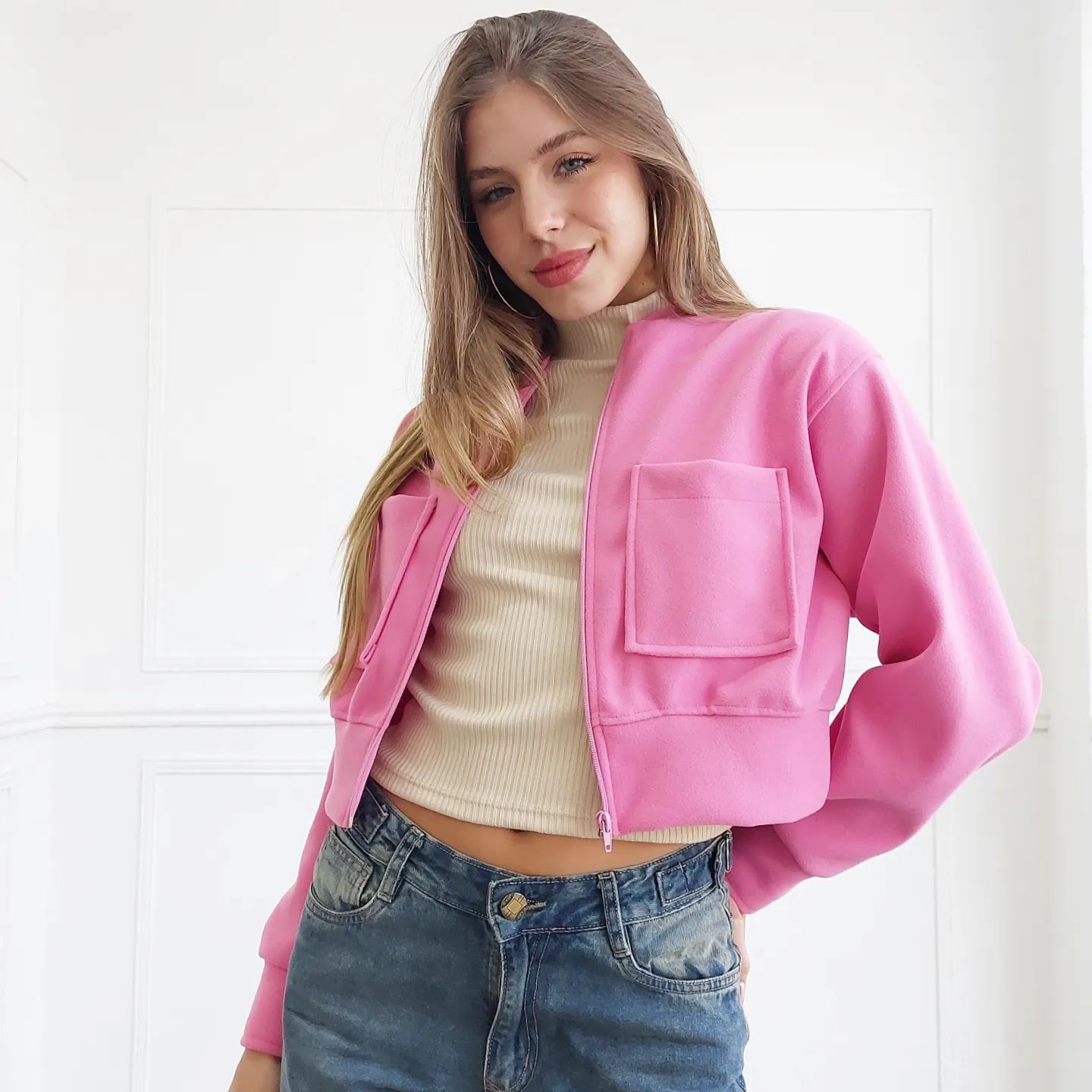 ↔ BLUSA DE MOLETOM FEMININA, MANGA LONGA LISA SEM TOCA E COM BOLSOS.