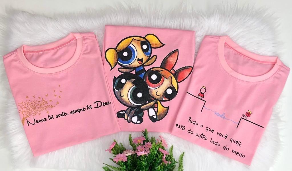 ♦ T-Shirt Feminina, costura ombro a ombro, reforçada na gola.