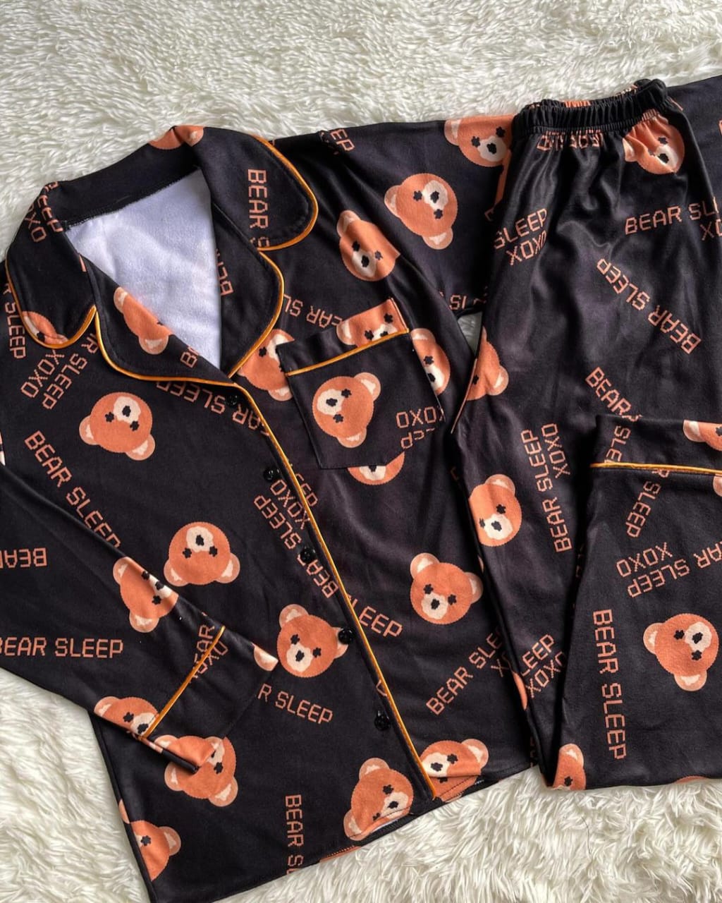 ⊕ PIJAMA FEMININO. BLUSA MANGA LONGA COM BOTÕES FRONTAIS + CALÇA DE MODELAGEM RETA.