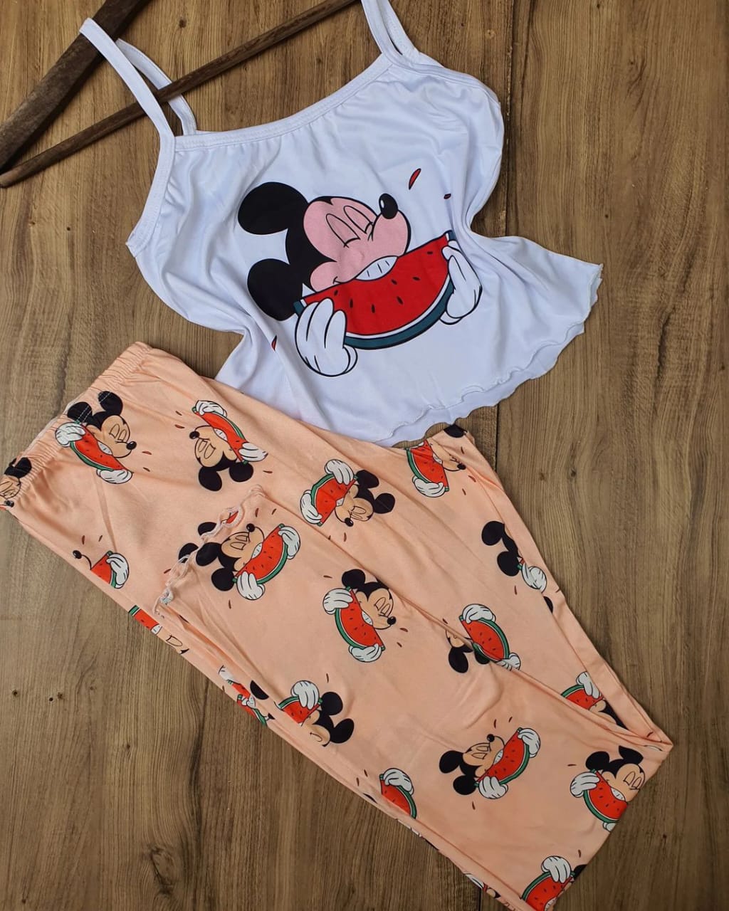 ⊕ PIJAMA FEMININO. BLUSA REGATINHA + CALÇA DE MODELAGEM RETA.