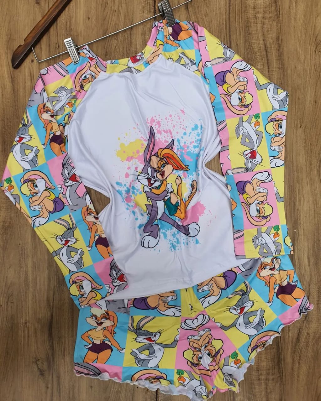 ⊕ PIJAMA DE FRIO FEMININO. BLUSA MANGA COMPRIDA + MINI SHORTS CONFORTÁVEL.