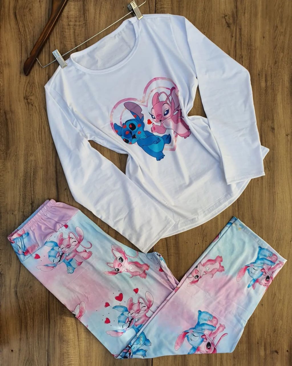 ⊕ PIJAMA DE FRIO FEMININO. BLUSA MANGA COMPRIDA  + CALÇA DE MODELAGEM RETA.