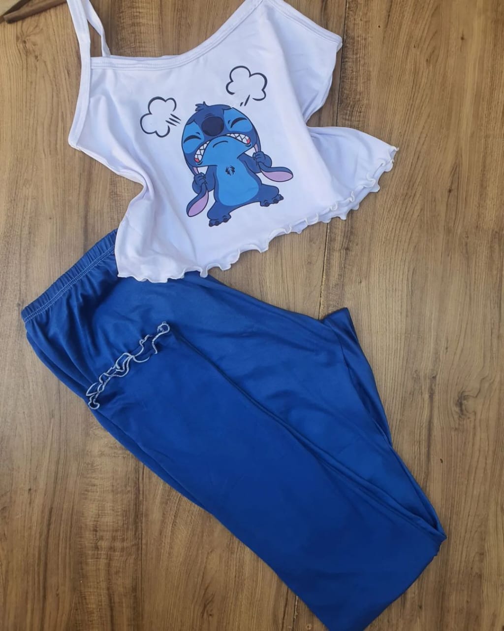 ⊕ PIJAMA FEMININO. BLUSA REGATINHA + CALÇA DE MODELAGEM RETA.