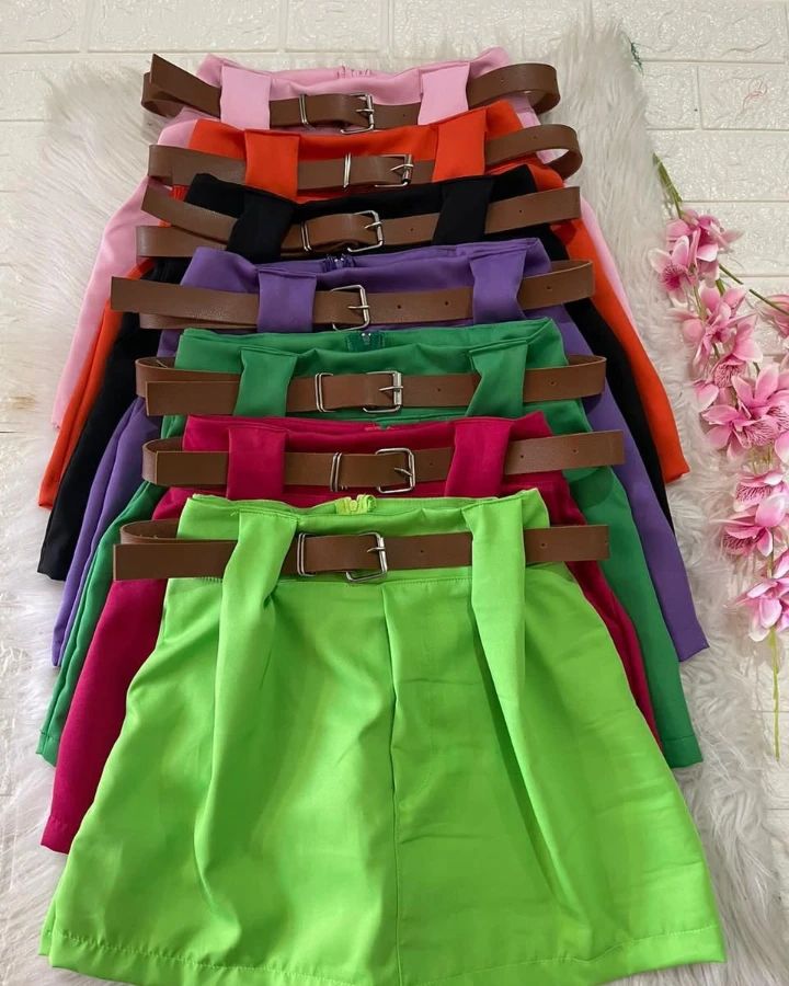 → SHORT FEMININO, CINTURA ALTA, SEM BOLSOS, ACOMPANHA UM CINTO MARROM.