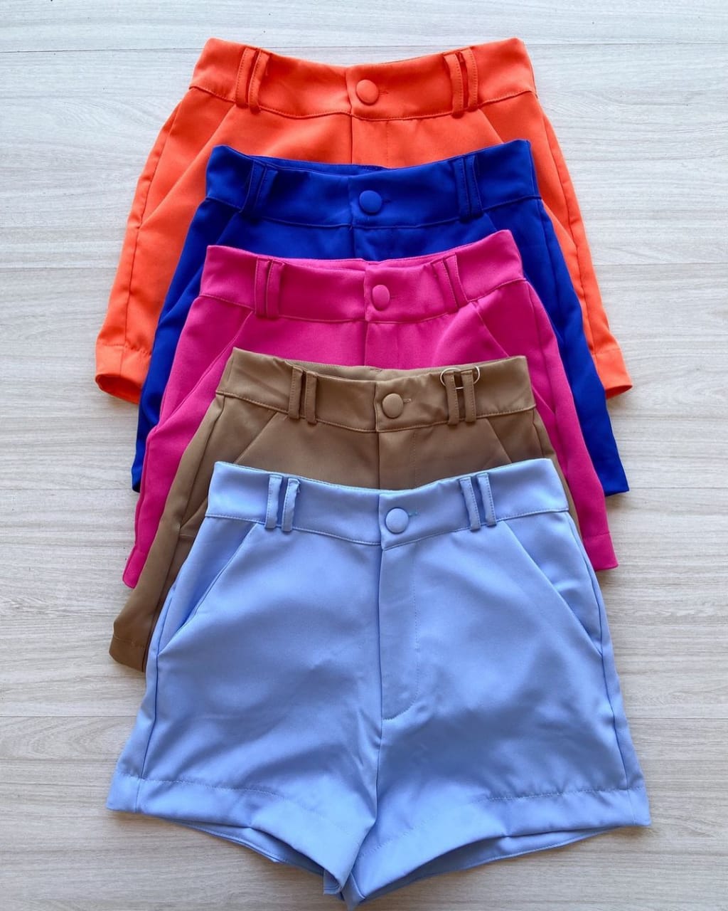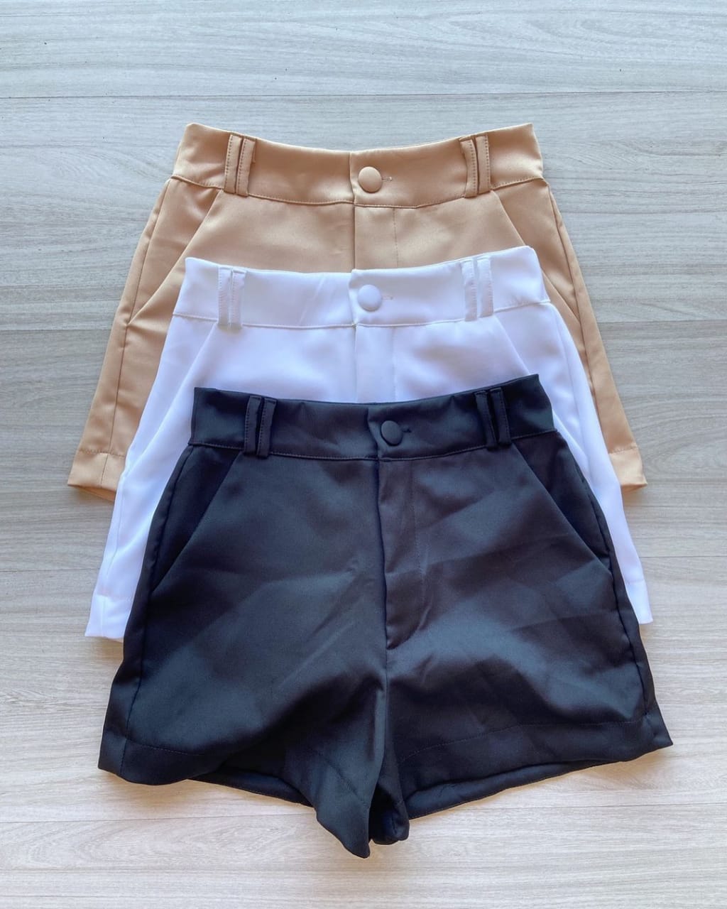 → SHORT FEMININO, COM BOLSOS, FECHO EM ZÍPER E BOTÃO. NÃO ACOMPANHA CINTO.
