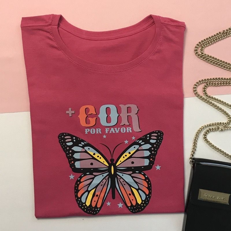 ♦ T-Shirt Feminina, costura ombro a ombro, reforçada na gola.