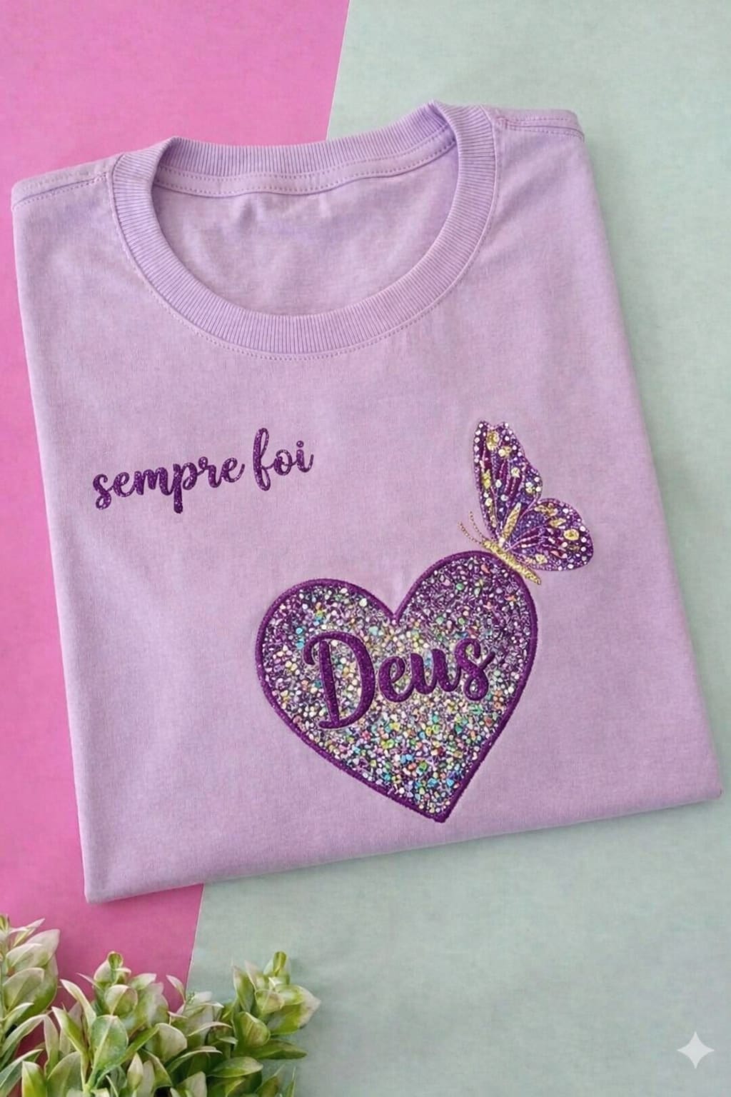 T-Shirt Coração Bordado – Sempre foi Deus II