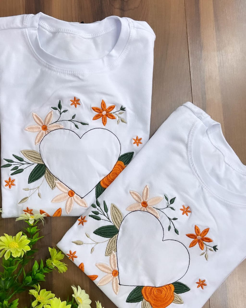 ♦ T-Shirt Feminina, costura ombro a ombro, reforçada na gola.
