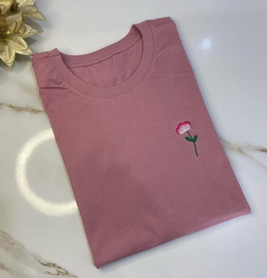 ♦ T-Shirt Feminina, costura ombro a ombro, reforçada na gola.