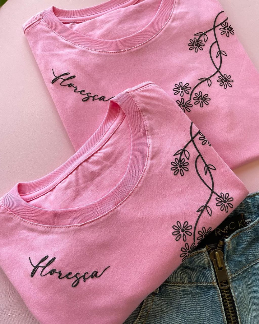 ♦ T-Shirt Feminina, costura ombro a ombro, reforçada na gola.