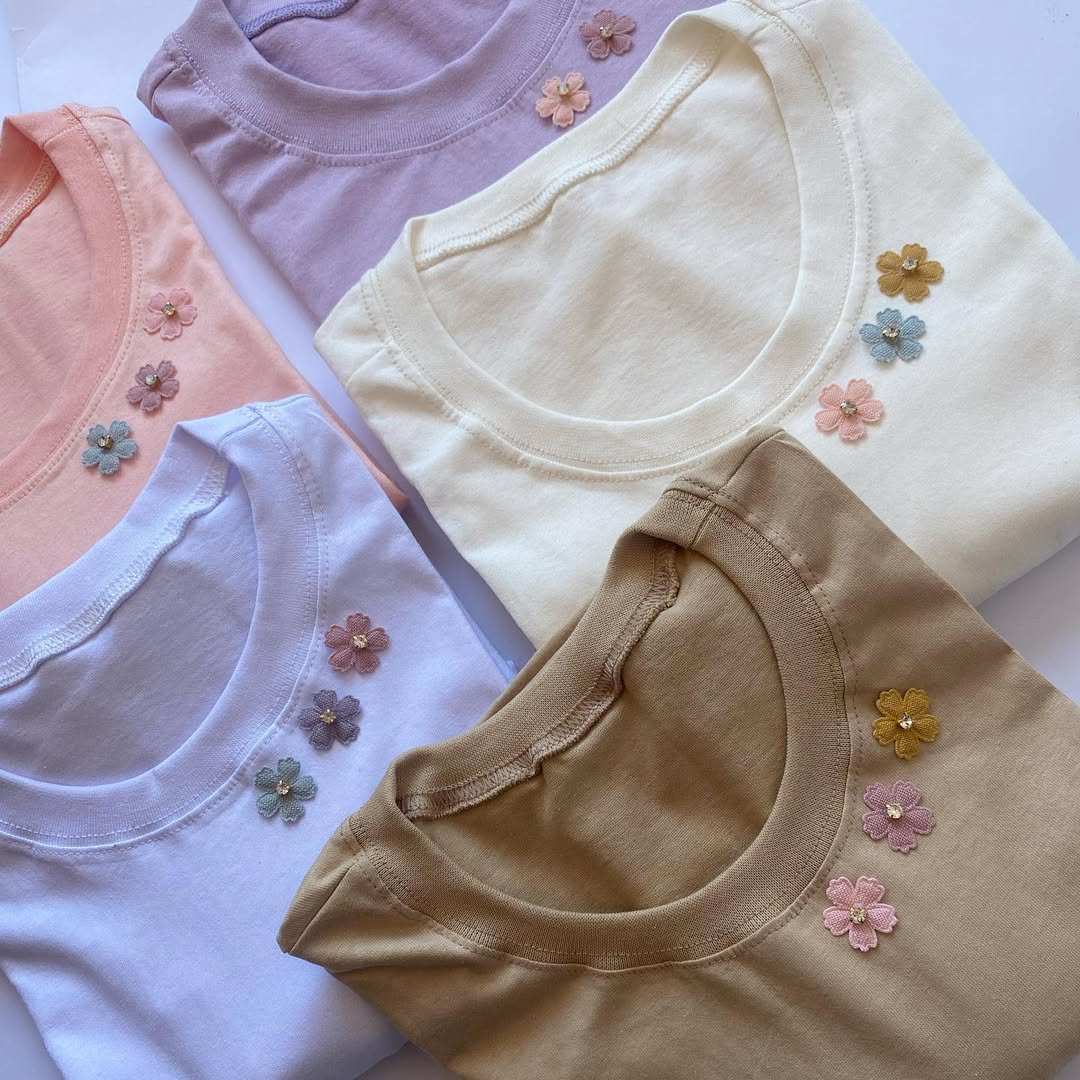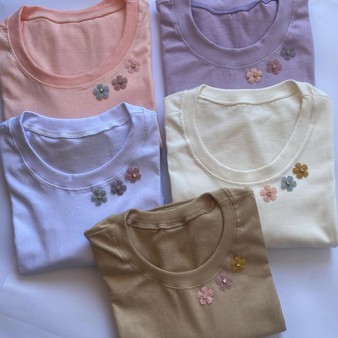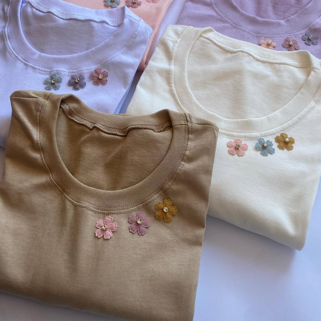 ♦ T-Shirt Feminina, costura ombro a ombro, reforçada na gola.
