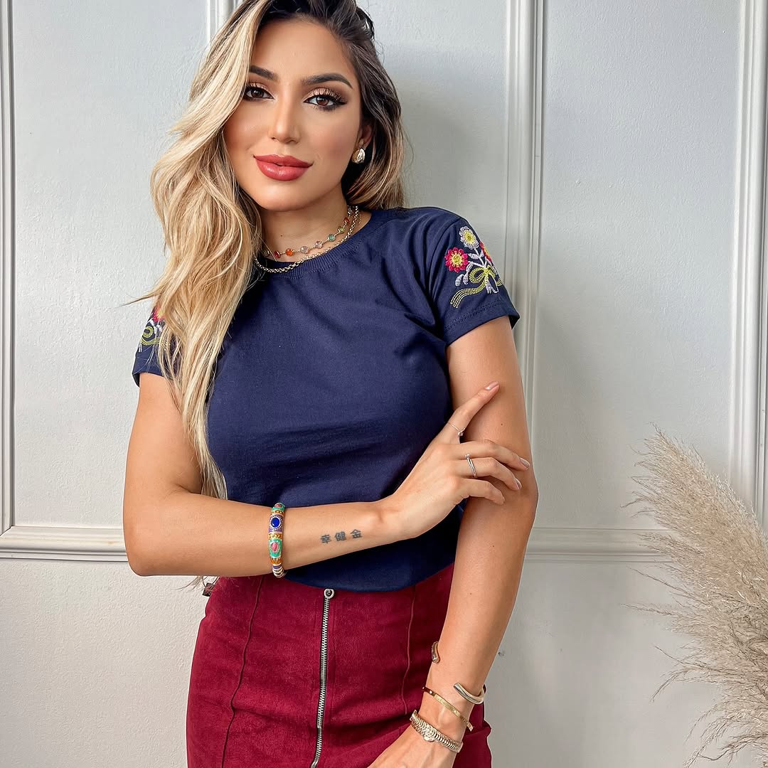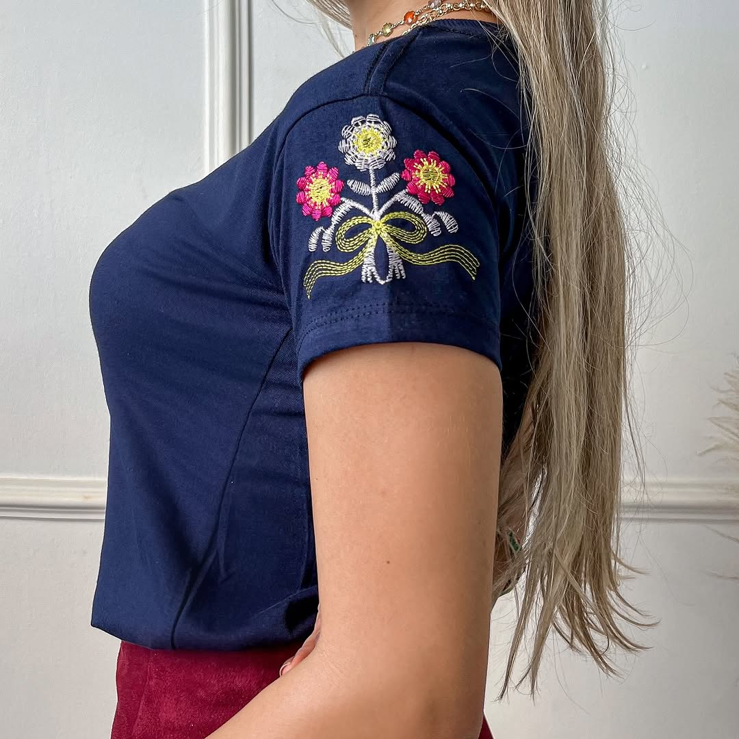 ♦ T-Shirt Feminina, costura ombro a ombro, reforçada na gola.