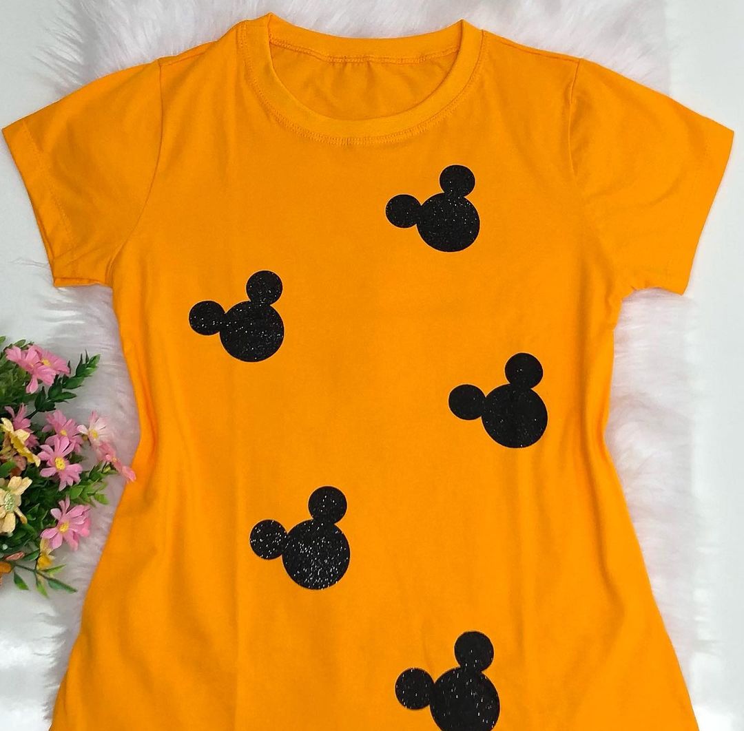 ♦ T-Shirt Feminina, costura ombro a ombro, reforçada na gola.