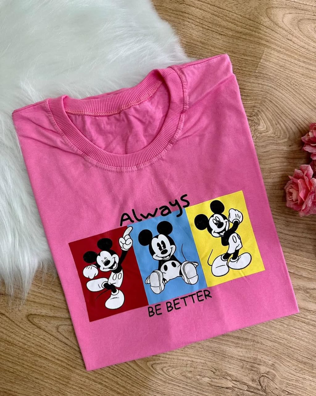 ♦ T-Shirt Feminina, costura ombro a ombro, reforçada na gola.