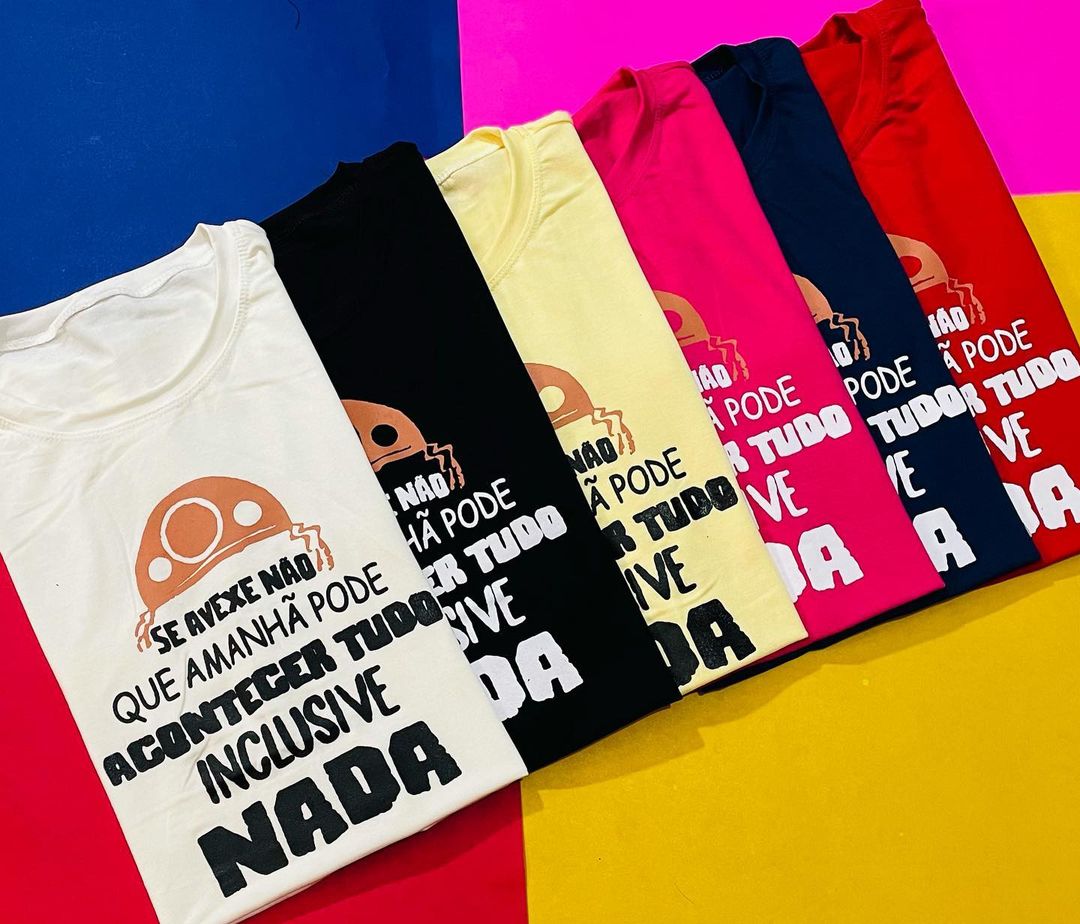 ♦ T-Shirt Feminina, costura ombro a ombro, reforçada na gola.