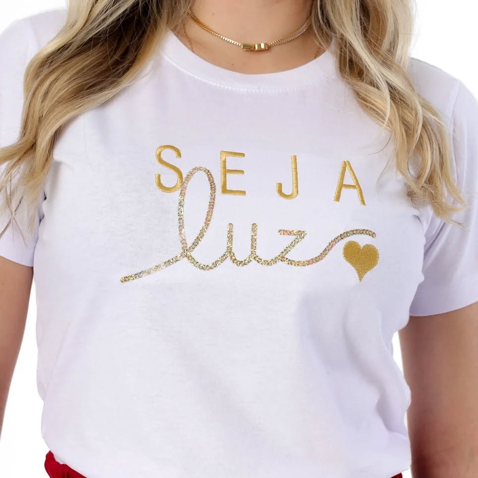 ♦ T-Shirt Feminina, costura ombro a ombro, reforçada na gola.