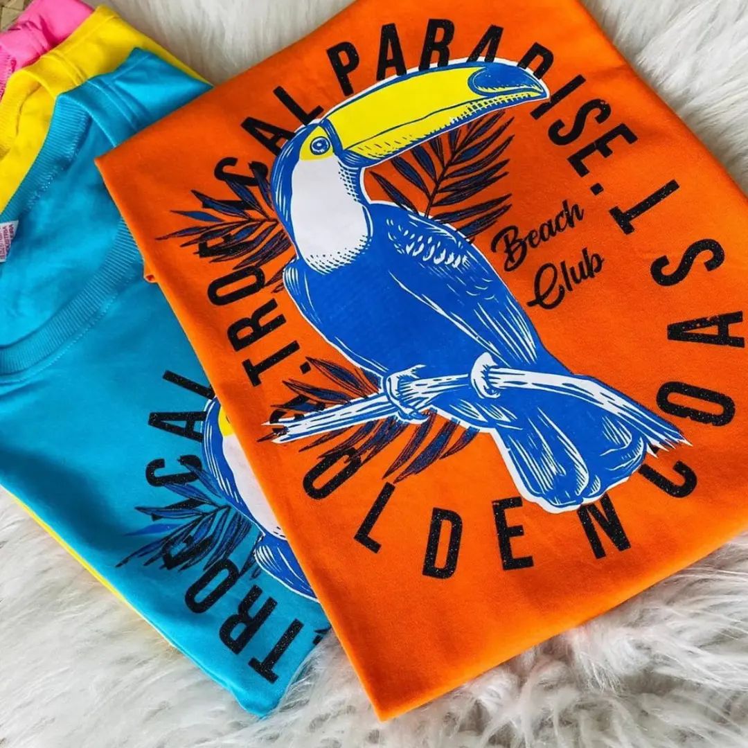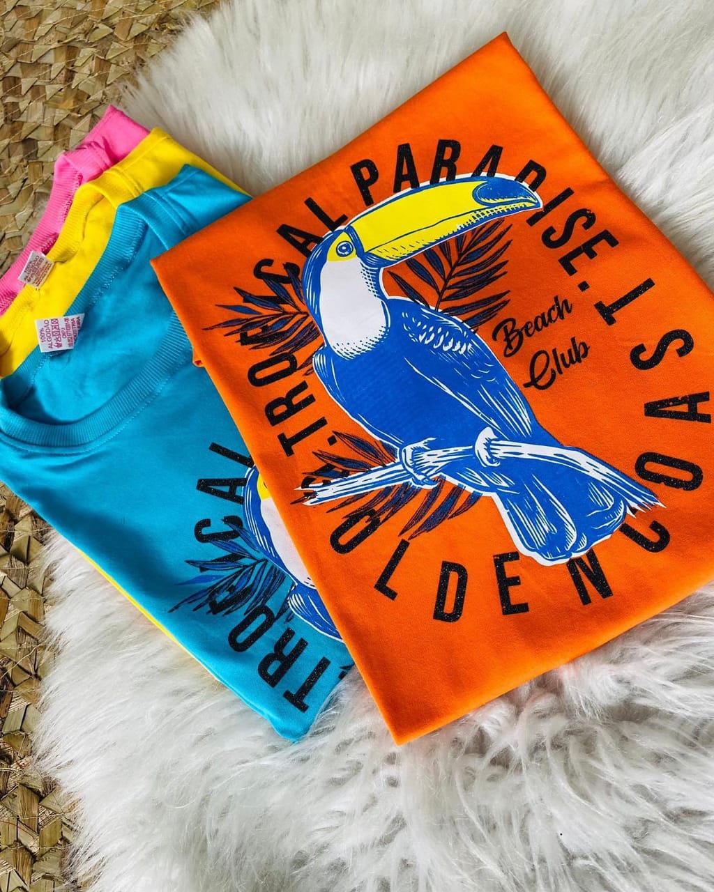 ♦ T-Shirt Feminina, costura ombro a ombro, reforçada na gola.